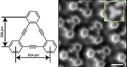 Benzol halqalarının üçlü bağlarla birlikdə tutulduğu dehidrobenzol annulenin strukturu və AFM şəkli