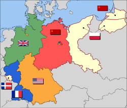 ABŞ, İngiltərə və Sovet İttifaqının 1945-ci il 17 iyul – 2 avqust tarixləri arasındakı Potsdam konfransında qəbul etdiyi qərara görə, Almaniya vahid bir ölkə kimi idarə ediləcəkdi. Lakin bu qərar heç vaxt yerinə yetirilmədi və Müttəfiqlərin hər biri işğal olunmuş əraziləri öz qaydaları ilə idarə etdi.