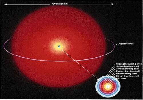 Qırmızı ifrat nəhəng ulduzların örtüklərində qatların yanma ardıcıllığı