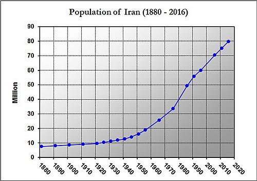 MKİ-ə əsasən İran İslam Republikası dünyada ən çoxsaylı əhaliyə malik XIX ölkədir. İran əhalisi sürətlə artan ölkələrdəndir. Rəsmi sayımlararası 55 ildə (1956–2