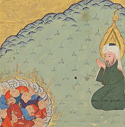 Vəhb deyir: -"Mütəal Allah onlara yandırıcı isti göndərdi. Doqquz gün şiddətli istinin əzabına mübtəla oldular. Suları içilməsi mümkün olmayan isti həmimə dönmüşdü. Bu zaman Allah onlar üçün bir bulud göndərdi. Hamısı onun altına toplaşdılar. Allah təala o buluddan onların başına atəş yağdırdı. Bir nəfər belə ondan canını qurtara bilmədi.