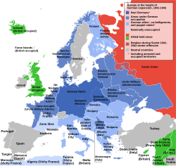 Hitlerin bu hərəkətlərinə cavab olaraq, iki gün sonra, 3 sentyabrda Almaniyanın Böyük Britaniya tərəfindən hərbi əməliyyatların dərhal dayandırılması barədə göndərilən ultimatuma məhəl qoymaması nəticəsində Böyük Britaniya və Fransa Almaniyaya müharibə elan etdi. 1940-cı ilin payızında alman qoşunları Danimarka, Norveç, Niderland, Belçika, Lüksemburqu işğal etdi, həmçinin Fransanın əksər hissəsini işğal edərək fransız hökumətini atəşkəs imzalamağa məcbur etdi. Elə həmin il ingilislər alman hava hücumunun qarşısını almağa nail oldu. 1941-ci ildə alman qoşunları Yuqoslaviya, Yunanıstan və Sovet İttifaqı ərazilərinə daxil oldu. 1942-ci ilə qədər Almaniya və müttəfiqləri Avropa qitəsinin böyük hissəsini və Şimali Afrikanı ələ keçirə bilsə də, Sovet qoşunlarının Stalinqrad döyüşündə qalib gəlməsinin ardınca, müttəfiq qoşunlar Şimali Afrikanı geri qaytardı və 1943-cü ildə İtaliya ərazisinə daxil oldu. Alman qoşunları ardıcıl hərbi məğlubiyyətlərə məruz qaldı. 1944-cü ilin iyununda Antihitler koalisiyası qoşunları Overlord əməliyyatı ilə birlikdə Fransa ərazisinə daxil oldu. Bununla eyni zamanda, Şərq cəbhəsində Sovet qoşunları Şərqi Avropanın içərilərinə doğru irəliləməyə başladı. Alman qoşunlarının Arden meşələri istiqamətində sonuncu əks-hücum cəhdinə baxmayaraq, 1944-cü ilin sonlarına qədər müttəfiqlər Almaniyaya daxil ola bildi. Hitlerin ölümünün ardınca, Berlin döyüşü ərzində, 8 may 1945-ci ildə alman silahlı qüvvələrinin təslim olması nəticəsində Avropada İkinci dünya müharibəsi başa çatdı. İkinci dünya müharibəsinin başa çatmasından sonra, nasist rejimin keçmiş üzvləri törətdikləri müharibə cinayətlərinə görə Nürnberq prosesinə cəlb olundu.