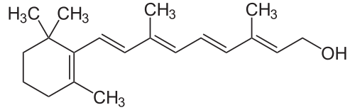 A vitamini yağda əriyən vitaminlərdəndir, əsasən qaraciyərdə toplanır. Yüksək miqdarlarda alınması toksik reaksiyalarına (zəhərlənmə) səbəb ola bilir. A vitamininin miqdarı Retinol Equivalant ilə ölçülür.