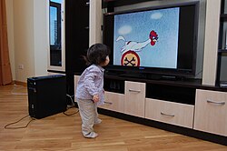 Azyaşlı balaca azərbaycanlı uşaq cizgi filmi seyr edərkən