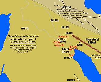 En-Merkarın dövründə Elam ərazisi təbii sərvətlərlə zəngin Aratta ölkəsinə getmək üçün tranzit kimi istifadə olunurdu. Bu barədə şumer mənbələrində qeyd olunur ki, I Uruk sülaləsinin beşinci hökmdan Gilqameş (e.ə. XXVII əsrin sonu) sidr ağacı əldə etmək üçün kiçik bir dəstə ilə Elama yürüş edir. Elamın sidr meşələri Zabu vilayətinin Hurrum adlanan dağlıq hissəsində yerləşirdi. Arattaya gedən yol buradan keçirdi.