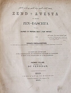 Avropalılardan ilk dəfə Fransa alimi Abraham Hiatsint Anketil-Düperron Avestanı fransız dilinə tərcümə etmişdir. O, 1755-ci ildə on ay Hindistanı gəzdikdən sonra 1760-cı ilədək Sort şəhərində yaşayır. Həmin şəhərdə Cəmasb adlı bir şəxs pəhləvi dilini ona öyrədir. 1771-ci ildə tərcümə etdiyi Avestanı Parisdə nəşr etdirir.