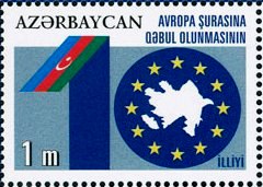 Azərbaycan Respublikasının Avropa Şurasına qoşulmağının 10 illiyi münasibətilə buraxılmış poçt markası