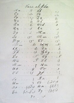 1922 əlifbası: Aa Bb Cc Çç Dd Ee Əə Ff Gg Ƣƣ Hh Ii ![]()