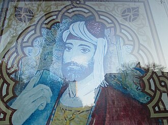 Türk geyimləri olan şərbuş (papaq) və qaba geyinən fiqur. Zemo Krihi kilsəsi. Gürcüstan.