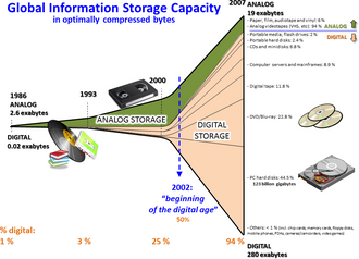 Rəqəmsal qlobal məlumat saxlama qabiliyyətinin qeyri-xətti artımı və analoq yaddaşın azalması