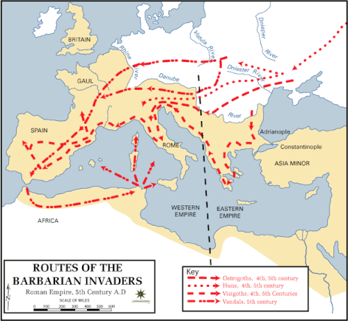 Eramızın başlanğıcında ən çox german tayfalarını barbar adlandırırdılar. Yeni dövrün tarix ədəbiyyatında "Barbar" termini Roma imperiyasını istila edib, onun ərazisində müstəqil krallıqlar (barbar krallıqlar) yaradan xalqları müəyyənləşdirmək üçün işlədilmişdir. Roma imperiyasında quldarlığın ləğvi və feodal münasibətlərinin formalaşmasında barbar istilaları mühüm rol oynamışdır.