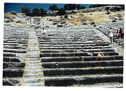Helen dövründən günümüzə gələn əhəmiyyətli qalıqlardan biridir. Həcmi 13.000 şəxsiyyətdir. 3 əsas hissədən ibarətdir. Bunlar Səhnə, Orkestra və Oturma yeridir. Bina uzun düzbucaqlı bir quruluşdur. Hər iki ucda oyunçuların girəcəyi bir qapı vardır. Bunlardan başqa 3 əsas giriş qapısı bulunmaktadır.1973-ci ildə edilən qazıntılardan sonra açıq hava muzeyi olaraq təşkil edilmişdir.