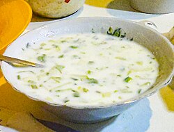 Bu, ikisini bir-birindən ayıran kiçik fərqlərə malik rus şorbası okroşkanın Azərbaycan versiyasıdır və Azərbaycana aid başqa bir isti şorba olan dovğaya bənzəyir.
