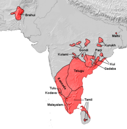 Dravidin ən böyük dilləri: tamil, malayyali və kannaradır. Andxra budağına: teluqu dili daxildir. Mərkəzi hind dillərindən ən böyüyü qonda dilidir. Şimal-qərb budağı brahui dilidir ki, bu dildə əsasən şimal-qərbi Hindistanda və Pakistanda danışırlar.