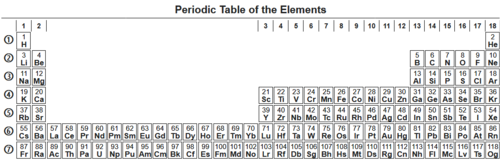 | 4 | 19 K | 20 Ca | 21 Sc | 22 Ti | 23 V | 24 Cr | 25 Mn | 26 Fe | 27 Co | 28 Ni | 29 Cu | 30 Zn | 31 Ga | 32 Ge | 33 As | 34 Se | 35 Br | 36 Kr | ||