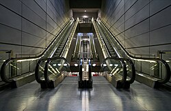 Eskalatorlar Danimarkada Kopenhagen metropoliteni stansiyasında, 2007-ci ildə