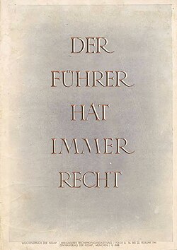 "Wochenspruch der NSDAP" divar qəzetindən sitat: "Fürer həmişə haqlıdır". 16 fevral 1941-ci il.