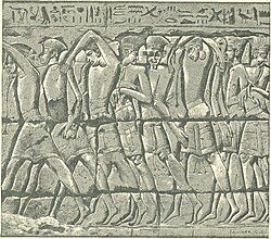 | Firon III Ramzes tərəfindən əsir götürülən filistinli döyüşçülər. |