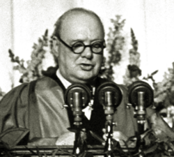 Fulton çıxışı — 1945-in sonu 1946-cı ilin əvvəllərində Vinston Çörçill bir neçə ay ABŞ-də səfərdə olduğu müddətdə prezident Harri Trumenlə, dövlət departamentinin rəhbərləri və digər siyasi xadimlərlə görüşlər keçirir.