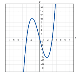 Həqiqi ədələr olan üçüncü dərəcədən bir çoxhədliin qrafiki belədir: