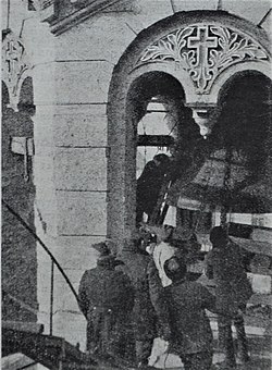 Kiyev şəhərindəki Müqəddəs Volodimir Kilsəsinin 5 min kiloqramlıq zənginin sökülməsi.