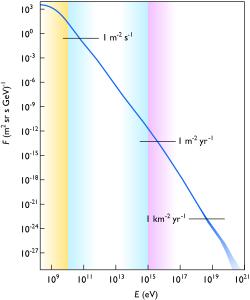 Yüksək enerjili ilkin kosmik şüaların enerjisinin və təyinat istiqamətlərinin ölçülməsi sıxlıq nümunəsi və geniş hava duşlarının sürətli vaxtlandırılması üsulları ilə ilk növbədə 1954-cü ildə Massachusetts Texnologiya İnstitutunun Rossi Kosmik Ray qrupunun üzvləri tərəfindən həyata keçirilmişdir. Təcrübə Harvard Kollecinin Rəsədxanasının Ağasız Stansiyası əsasında 460 metr diametrində bir dairə içində təşkil edilmiş on sintilasyon detektorlarını işləmişdir. Bu işdən və dünyanın bir çox yerində həyata keçirilən bir çox təcrübədən, əsas kosmik şüaların enerji spektri artıq 1020 eV-dən daha çox uzanır. Auger Layihəsi adlı böyük bir hava duşu təcrübəsi hazırda Çikaqo Universitetindən Fizika Nobeli mükafatı alan 1980-ci il James Cronin və Alan Watson'un başçılığı altında, beynəlxalq fiziki konsorsiumu tərəfindən Argentina Argentina pampasındakı bir saytda fəaliyyət göstərir. Leeds Universitetidir. Onların məqsədi ən yüksək enerjili ilkin kosmik şüaların xüsusiyyətlərini və gələcək istiqamətlərini araşdırmaqdır. Nəticələrin kosmik şüaların enerjilərinə uzun məsafələrdən (təxminən 160 milyon işıq ili) olan nəzəriyyəçi Grişen-Zatsepin-Kuzmin məhdudiyyətinə görə 1020 eV-dən yuxarı olan 1020 eV-dən yuxarıda meydana gələn hissəciklər fizikası və kosmologiya üçün əhəmiyyətli təsiri gözlənilir. Kainatın Big Bang köklü qalıqları fotonlarıdır.