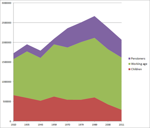 | Siyahıalınma ili | Uşaqlar | Əmək yaşı | Təqaüdçülər |
