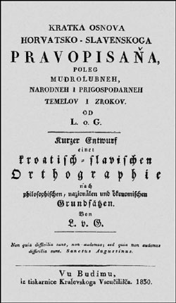 1830-cu ildə Budada Qayın latın əlifbası ("Xorvat-slavyan orfoqrafiyası üçün qısa əsas") nəşr olundu ki, bu da ilk ümumi Xorvat orfoqrafiyası kitabı idi (İqnyat Dürçeviç və Pavao Ritter Vitezoviçin əsərlərindən sonra). Kitab iki dildə, xorvat və alman dillərində çap edilib. Xorvatlar latın əlifbasından istifadə etdilər, lakin bəzi xüsusi səslər vahid şəkildə verilməmişdi. Qay, Pavao Ritter Vitezoviç və çex orfoqrafiyasından nümunə götürərək dildəki hər səs üçün latın qrafikasının bir hərfindən istifadə etdi. O, diakritiklərdən və lj və nj diqraflarından istifadə etmişdir.