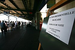 2007-ci il Fransa prezident seçkilərinin birinci turu üçün İsveçrənin Lozanna şəhərində növbəyə düzülmüş mühacir fransız seçicilər.