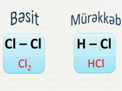 Məsələn, su hidrogen və oksigen elementlərnin atomlarından; sulfat turşusu isə hidrogen, oksigen və kükürd elementlərinin atomlarından əmələ gəlmiş mürəkkəb maddələrdir.
