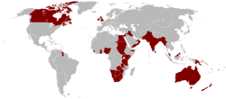 Bordo rəngli alan 1921-ci ildə İngilis İmperatorluğuna aid bölgələri göstərir . Afrikanın müstəmləkələşməsinde İngiltərənin payı çox böyük idi. Müstəmləkə fəaliyyətləri tacirlər tərəfindən qurulan şirkətlər vasitəsiylə icra edildi. Bu şirkətlər getdikləri yerlərdə torpaqları öz üzərlərinə götürərək döyüş və barış etmə səlahiyyətinə sahib idilər. Dövlət tərəfindən səlahiyyətlərlə donatılıp fərdi dövlət görünüşü aldılar. İngilis lər daha çox Portuqaliya müstəmləkələri üzərində genişlediler . Hindistana gəlib Portuqaliyalılar əlindən sahil bölgələrini aldılar. İngiltərənin Afrikadan aldığı torpaqlar: İngilis Somalisi , Misir , Nigeriya , Uqanda , Keniya , Bechuanaland , Rodezya və Nysaland'dır .