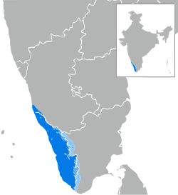 Malayalam, həm də Nilqris rayonunda, Kanyakumari rayonunda, Tamil Nadunun Koimbatoresində, və Karnatakanın Dakşina Kannada, Manqalore və Kodaqu rayonlarında danışılır.
