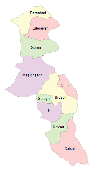 Meşkinşəhr şəhristanının inzibati bölgüsü