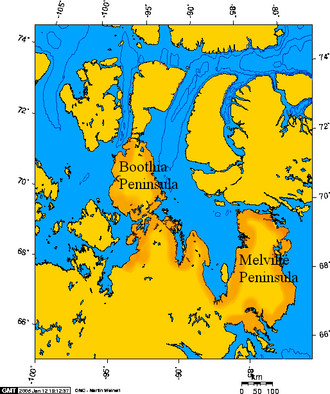 Melvill yarımadasının şərqində Foks körfəzi, qərbdə isə Kommitti körfəzi onun sahillərini yuyur. Yarımada Kanada artikasında ən iri yarımadadır. 1999-ci ildən Nunavut vilayətinin Kikiktani regionuna verilmişdir. Buna qədər isə Kanadanın Şimal-Qərb ərazilərinə daxil idi. Ən hündür nöqtəsi 564 m, sahəsi 62,564 km², uzunluğu 400 km, 113–217 km təşkil edir.