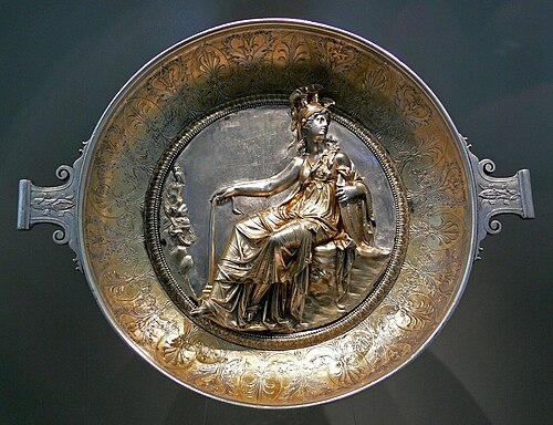Minerva Roma qızıl suyuna salınmış gümüş kasada, 1-ci əsr b.e.ə