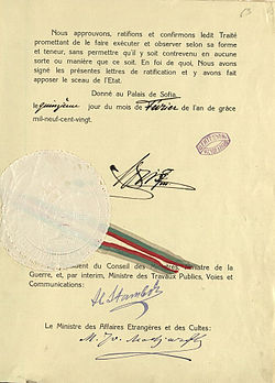 • Bolqarıstanın sahəsi 2566 km2 olan 4 rayonu Serblərin, Xorvatların və Slovenlərin Krallığına (1929-cu ildən Yuqoslaviya) verilmişdir.