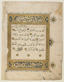 Nəsx xətti ilə yazılmış Fatihə Surəsi