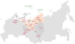 Regionlar Nenets Muxtar Dairəsi, Yamalo-Nenets Muxtar Dairəsi, Taymır Dolqan-Nenes rayonu, Komi Respublikası, Murmansk vilayəti