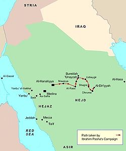 1818-ci ilin aprelində Misirlilər Birinci Səudiyyə əmirliyinin paytaxı Dəriyyə şəhərini mühasirəyə aldılar. 5 aylıq mühasirədən sonra 15 sentyabrda paytaxtı ələ keçirdilər.