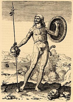 Pikt döyüşçüsü. Teodor de Brinin hazırladığı qravür. Tomas Herriotun "Virciniya torpaqlarının qısa və dəqiq təsviri" kitabı. 1588-ci il.