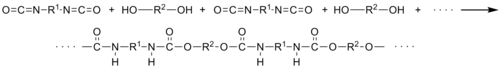 Diizosianat və poliol arasında gedən reaksiyalar nəticəsində poliuretan polimerinin alınması. Poliuretanlar izosianat qruplu birləşmələrin bi- və polifunksional hidroksil tərkibli birləşmələrlə qarşılıqlı təsirindən alınır. İzosianat kimi toluilendiizosianatlar (2,4 — və 2,6-izomerlər və onların 65:35 nisbətində qarışığı), 4,41-difenilmetandiizosianatlar, 1,5-naftilen-, heksa-metilendiizosianatlar, poliizosianatlar, trifenilmetan-triizosionatlar, biuretizosianatlar, izosianuratizosianatlar, 2,4-toluilendiizosianatların dimeri, bloklandırılmış izosianatlar istifadə olunur. İlkin izosianatın quruluşu uretanəmələgəlmənin sürətini, möhkəmlik göstəricilərini, işığa və radiasiyaya qarşı davamlılığını, həmçinin poliuretanların bərkliyini müəyyən edir. Hidroksiltərkibli birləşmələr aşağıdıkılardan ibarətdir: