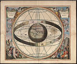 Ptolemey dünyanın modelini yaratmağa cəhd etmişdir. Onun təsəvvürünə əsasən yer kürəsi dünyanın mərkəzində durur və bütün başqa göy cisimləri (ay, ulduzlar, planetlər) onun ətrafında fırlanırlar. Bunu astronomik cəhətdən təsdiq etmək üçün o bir çox göy cisminin trayektoriyasını hesablayaraq onları çevrə şəklində yerin ətrafında təsvir etmişdir. Ptolemeyin dünya modeli (geosentrik nəzəriyyə) öz dəqiqliyinə görə Kopernikinkindən üstün idi. Kopernik də yer və göy cisimlərinin çevrə üzrə hərəkət etməsini qəbul edirdi. Yalnız Keplerin yerin ellips üzrə hərkət etməsini sübut edəndən sonra dünya haqqında düzgün təsəvvür yaranmağa başlamışdır.