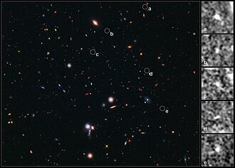 Kainatın mövcud olmasından yalnız 600 milyon il sonra bir yerə yığılmış beş qalaktikanın qarışıq görüntüsü.