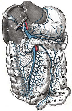 Mənbəyi dalaq venası - lat. v. lienalis, yuxarı çöz (müsariqə) venası - lat. v. nesenterica superior