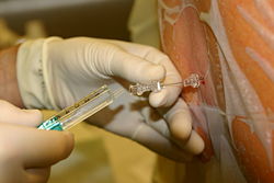 • Bundan sonra onurğa kanalına 2-2,5 ml 0,5% li izobar (yaxud 1,5-2 ml 0,5% li hiperbar) Bupivacain məhlulu yeridilir.