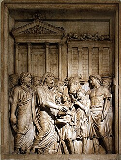 Mark Avreli və imperator ailəsinin üzvləri german tayfalarına qarşı uğurlarına görə minnətdarlıq üçün qurban verirlər.
