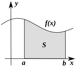 f {\displaystyle f} {\displaystyle f}, [ a , b ] {\displaystyle [a,b]} {\displaystyle [a,b]} intervalında bir həqiqi qiymətli funksiya və S = { ( x , y ) | 0 < y < f ( x ) } {\displaystyle S=\{(x,y)|0 {\displaystyle S=\{(x,y)|0<y<f(x)\}}, f {\displaystyle f} {\displaystyle f} funksiyanın altında və [ a , b ] {\displaystyle [a,b]} {\displaystyle [a,b]} intervalının üstündə qalan müstəvi səthi olmaq şərtiylə