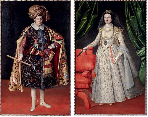 Robert Şirli və çərgəz arvadı Tereza Sapsonia ənənəvi Səfəvi geyimində. Şirli İrandan Avropaya qayıdandan sonra ənənəvi şərq geyimlərini qərbdə məşhurlaşdırmış və eyni zamanda hər iki mədəniyyətin sintezini yaratmağa cəht etmişdir. Şərq mədəniyyətində görünməyən cib saatı və əl tapançası bu sintezə misal göstərilə bilər.