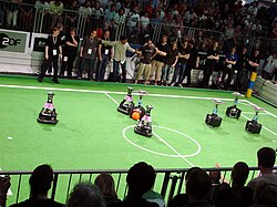 - İllik RoboCup turnirində, robotların, futbolun sadələşdirilmiş formasında rəqabətin aparılması.