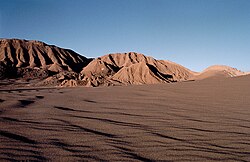Atakama səhrası, Çili. Peru cərəyanı, atmosferin aşağı qatlarını soyudur və atmosfer çöküntülərinin düşməsinə (ildə 50 mm-dən də az) mane olan temperatur inversiyasını yaradır. Elə buna görə də, bu səhra Yer kürəsinin ən quraq yeri hesab olunur.